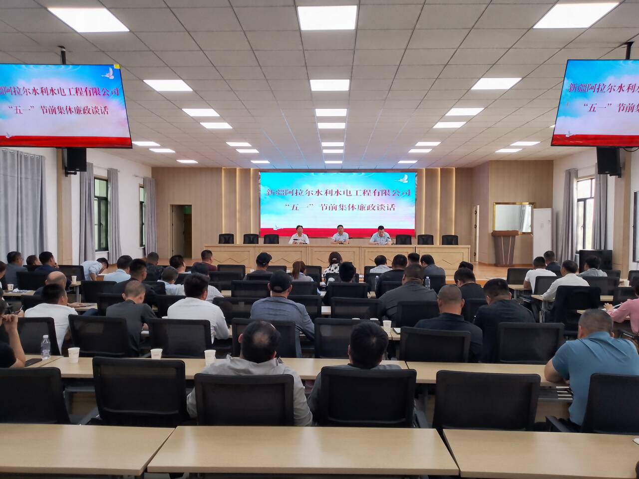 4月30日,新疆阿拉尔水利水电工程有限公司组织总部全体党员干部及项目经理开展节前廉洁警示教育,提醒全体党员干部在节日期间要严格遵守各项规定,不断增强廉洁自律意识,筑牢廉洁从业防线,营造风清气正的节日氛围。