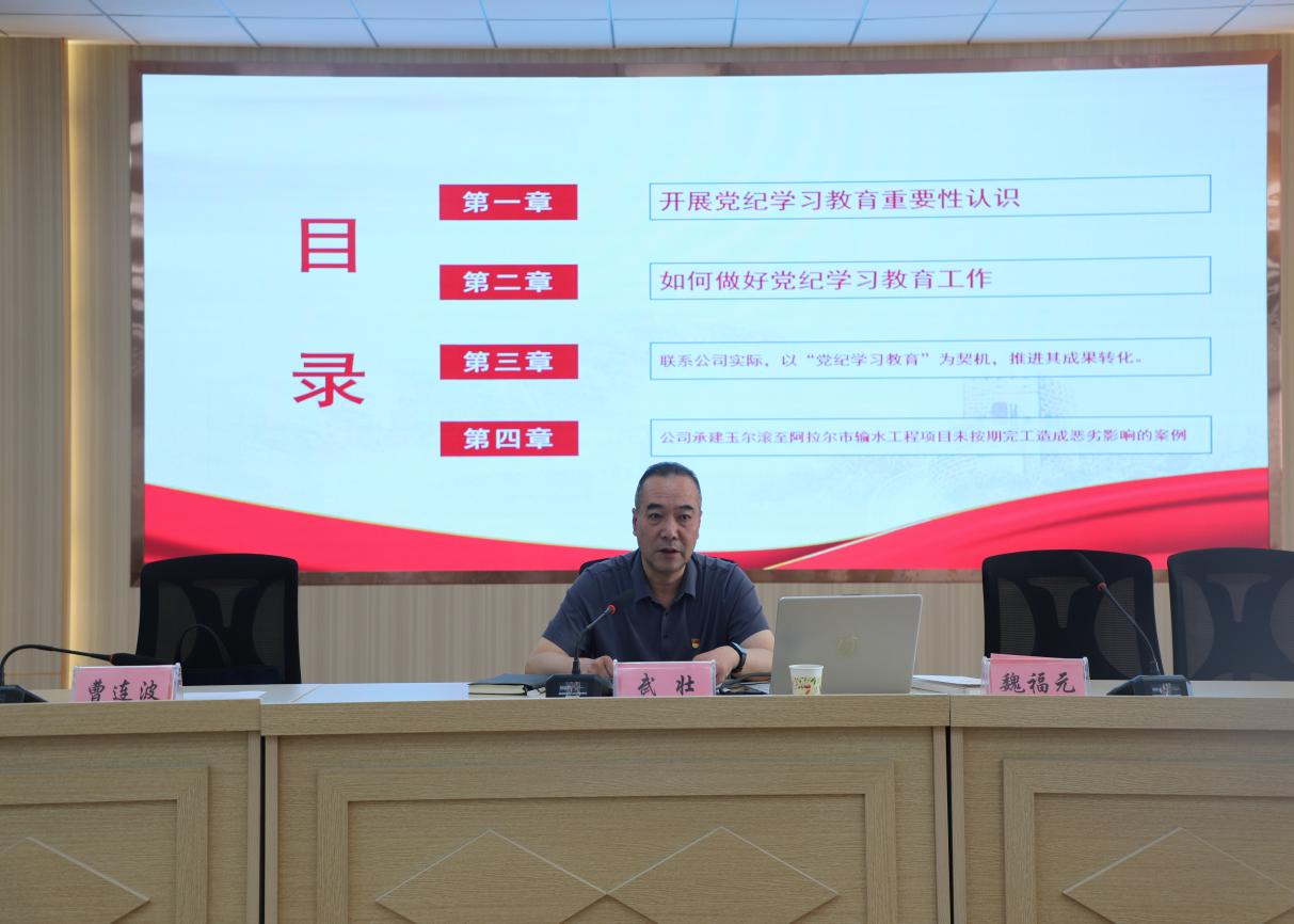 2024年6月5日,水利水电公司组织召开党纪学习教育暨警示教育大会,党委副书记、总经理魏福元同志主持会议。公司党委委员、高管、总部、分(子)公司全体党员干部员工参加会议。