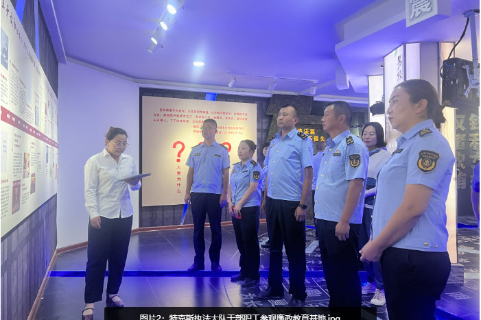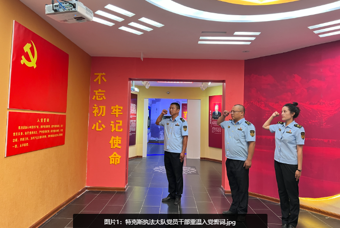 牢记宗旨,克己奉公。特克斯执法大队组织全体执法人员参观特克斯县廉政教育基地,通过一个个违纪违法典型案例,让执法人员清醒认识到违反党纪国法的红线坚决不能碰,要时刻紧绷廉洁自律之弦,做到心有所戒、行有所止,坚守底线,在名利诱惑面前立场坚定,堂堂正正做人、干干净净做事。参观结束后,党员干部重温入党誓词,进一步坚定了理想信念,增强了政治使命感和责任感。