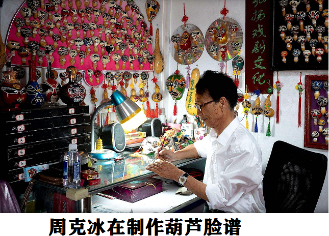 前些年,周老从朋友那边获得12粒葫芦种子,就随手在大儿子的院子内种下了,没想到当年腊月里竟然收获近1000个葫芦。“朋友在北京植物园工作,我也是想种着玩玩,收获的时候有1000多个葫芦,真是太意外了。”周老告诉记者,那么多葫芦,扔了怪可惜的,要找点事儿做做才好。 “我喜欢戏剧,何不在葫芦上画脸谱呢。”于是,启动了他做葫芦画的开关。念头一旦生根发芽,就一发不可收拾,周老开始了画葫芦脸谱的学习和探索过程,周老就踏上了画葫芦脸谱的路。