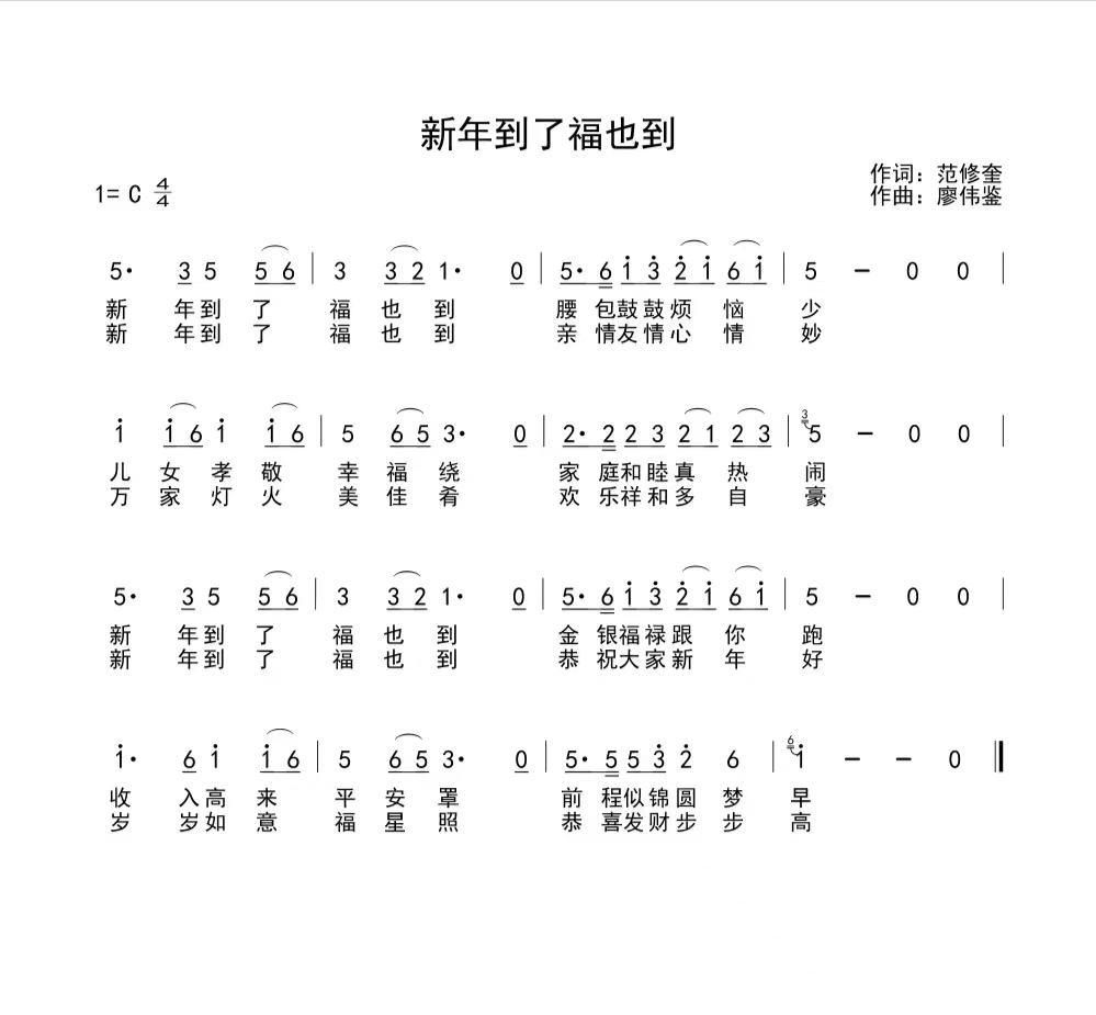 河北省曲周县文化名家范修奎诗词创作工作室作词歌曲“新年到了福也到”全网上线发行