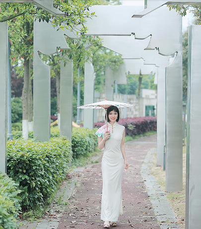 青阶古巷清风老,锦绣旗袍淑女娇。