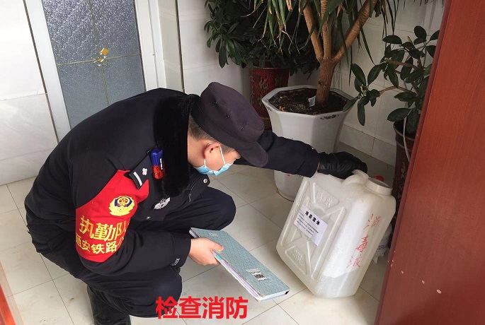 同时白洋利用休班时间检查辖区内部单位消防安全,特别是疫情期间各单位消毒酒精存储、使用规范措施,以及各单位疫情防控措施,内部单位到岗,返岗人员疫情期间接触人员摸排情况。特别是在2月5日检查延安车务段榆林车站信号楼时,经过询问发现车站职工使用消毒酒精给办公室,职工人身消毒采用喷洒式消毒,民警白洋便向车站职工详细讲解了医用酒精使用存在的风险,以及正确存储使用消毒酒精的方法。