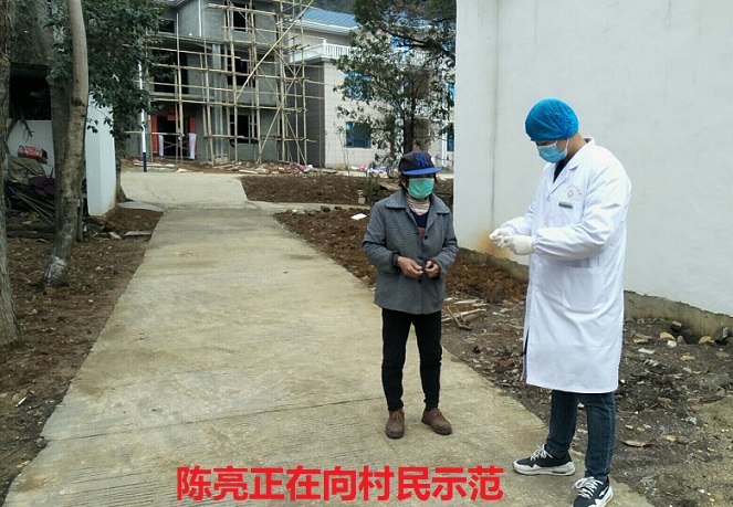 辖区村落的“走访者”;春节期间,正是在外打拼人员返乡时期,为确保辖区居民生命安全和身体健康,在村医的带领下,陈亮每日走村串户到辖区内各个村组,走访各户排查重点人员。对疑似病例的密切接触者采取医学观察,早晚均上门进行体温测量,询问有无咳嗽、胸闷等不适症状。参加工作近五年,陈亮已会说部分瑞昌话,入户碰见不太懂普通话的大叔大妈,陈亮就操起他的“瑞饶话”,耐心的向对方解释自己的来意,为对方测量体温,登记信息,不厌其烦地询问他们身体状况,提醒他们避免出门。