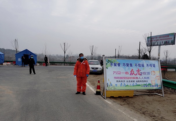 G346公路二程驿站卡口,是一条交叉路口,北通桐柏集,西达河口镇,东到县城,南达觅儿、八里镇,车流人流量大,是一个重要的交通要道。黄世友老师冒着被感染的风险,在这个路口每天重复着同样的工作,却从没嫌单调乏味,他说“把简单的事情做好就是不简单,把平凡的事情做好就是不平凡”,正是凭着这份执着,他每次值守的信息登记详细完整。2月14日晚,风雨大作,值守帐篷被风掀翻;2月15日雪花飘飘,天寒地冻,他依然坚守卡口,没有喊一声累。