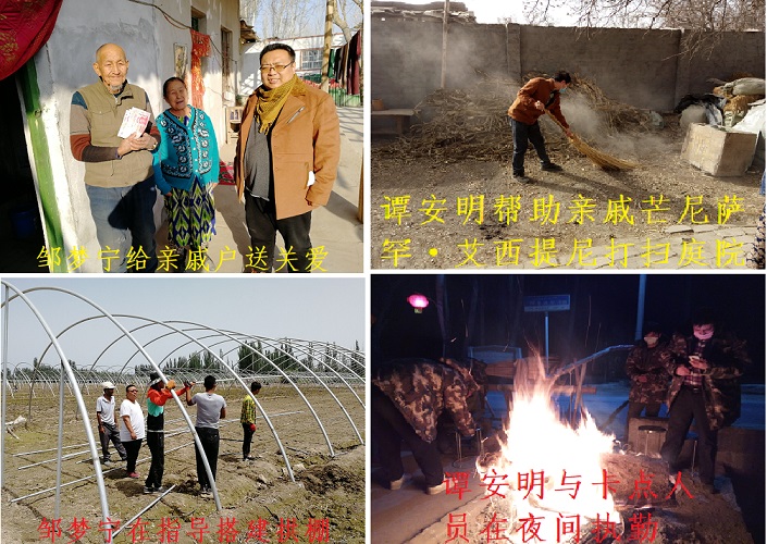 身份档案:谭安明,男,驻村4年,6年乡村教师工作经历,半年沙雅县市场监督管理局行政办经历,2017年驻村担任工作队第一书记、工作队副队长,2018年驻村担任工作队成员至今。