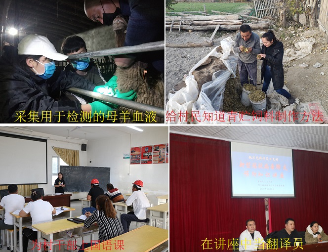 与此同时,我还选择了6家养殖户作为示范点,利用所学的专业知识,为他们的绵羊进行布病检测,免费提供精饲料饲喂,并且针对这些绵羊采用同期发情技术,进行人工配种,提高其受胎率。当他们得知自己家怀孕的母羊全部产羔时,脸上挂着洋溢的笑容,我感到非常欣慰,似乎有一种无形的力量和勇气让我毅然决定继续为他们服务。