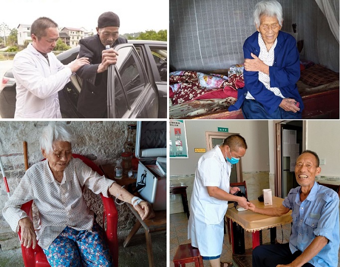 如老塘村4组曾甫志,2011年,患上了帕金森综合症,老人本来体质就不好,加上患上了这样病,行动更加不方便了。老人在2015年左右又患上了高血压,肾结石。有时老人病情加重了些,就打电话联系我,老人儿子在高崇山镇政府上班,也没多少时间在家,一发病如果能在卫生室治疗地,每次都是李旭东去他家接到卫生室来,输完液,治疗完后,又把他送回家,到现在都坚持了快四年。接送老人,他从没让老人受半句重话,无怨无悔 。