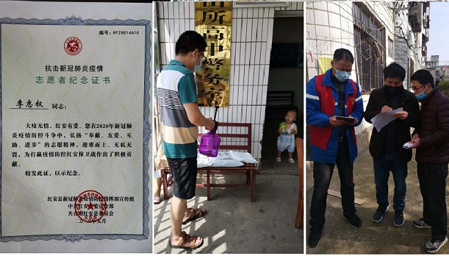 2020年新冠肺炎疫情发生后,学校已经放寒假,但在校内居住的教职工及家属仍有50多人。自1月23日武汉“封城”,各地迅速启动重大突发公共卫生事件一级响应,红安县大赵家高中迅速成立了疫情防控工作领导小组,李志权老师在校率先到岗,冲锋在前。
