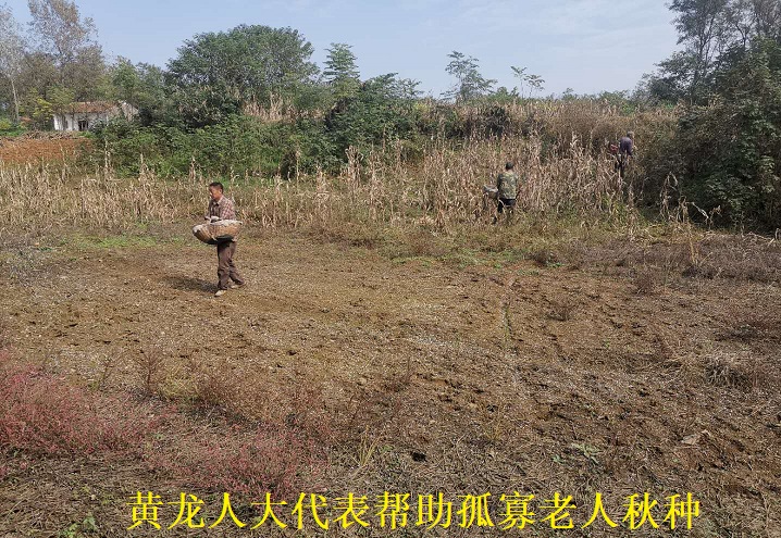清风网讯(黄龙镇人民政府:杨 涛)11月1日,暖温阳光照耀着深秋的大地。革命苏区襄阳黄龙镇向湾村五组孤寡老人袁顺艮老人来到玉米地里,想看看玉米地什么时候能种上,还没到地里,就看见往年常见的一幕:区人大代表、村支部书记向志庆正和几名村组干部撒肥的、撒种的、开机械的,个个忙得满头大汗,几亩地已经快种结束了。