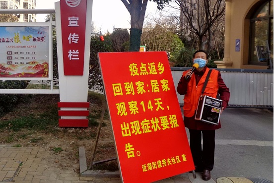 “冠状病毒无比猖狂,建湖人筑起了铁壁铜墙!疫魔面前神不显灵主不会帮,老百姓坚决依靠党中央……”从2020年1月27号开始,肖公章手持话筒、腰挎音箱,身穿红马甲、佩戴红袖章先后在近湖街道盂兰社区、幸福社区以及宝塔镇港口村、冈西镇东吉村等80多个镇村(居)、社区宣讲200多场次,宣传普及疫情防控知识,提高群众自我防护意识,受到群众一致好评。