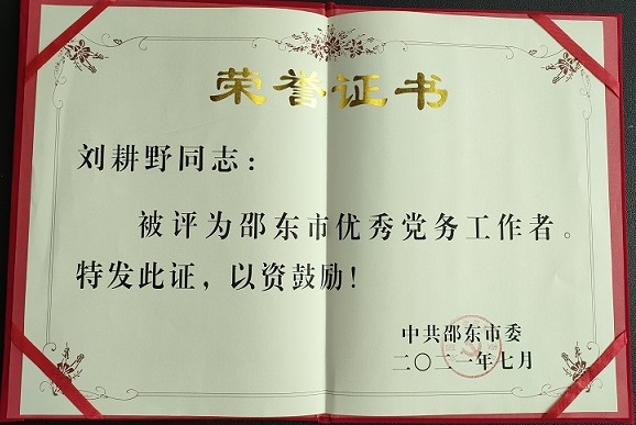 清风网讯(通讯员:李湘兵 王瑛 李敏涛) 刘耕野是邵东市中医内科副主任医师,2019年担任邵东市中医医院党委书记。近年来,他以习近平新时代中国特色社会主义思想为指导,认真贯彻党要管党,全面从严治党方针,严格落实党建工作责任,抓基层、建机制、强基础、激活力,以高质量党建工作促进医院发展,彰显中医药为邵东人民身体健康发挥了积极作用。他曾被邵东市人民政府行政嘉奖十余次,荣立三等功多次。2021年7月1日,刘耕野被中共邵东市委授予“优秀党务工作者”殊荣。