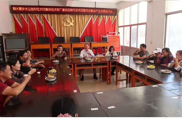 周瑞青队长通过身边资源,深入了解学习了茶业的培育、修剪、生产、加工、销售等有关知识,探索如何把当地茶叶走出去,把当地经济带起来,先后引入多起茶叶公司和做茶老板到大立色村进行投资考察,最终商定具有稳定销路销量“佳铭汇”公司的李总到大立色村投资,投入百万余元为建设标准化茶厂,并负责日后的销路销量。