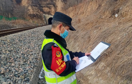 铁路的划分比较简单,一般分为有砟铁路和无砟铁路以及电气化铁路和非电气化铁路,而陕北是电气化铁路和非电气化铁路并存,这也对线路治安巡查的重点有一定的要求,非电气化铁路的车速相对较慢,对线路封闭要求不高,有不少区段都呈半封闭状态,也就容易造成周边村庄牛羊上道和闲杂人员入网,进而影响列车的安全行驶。因此,就需要详细掌握铁路沿线的村庄、学校、工厂、牛羊养殖户、隧道、桥梁等数据,而胡警长就是对富县东站派出所辖区内基础情况最了解的几个人之一,当问到他的时候他这样说道:“基础数据是要靠脚走出来的,用眼睛真真实实看到的,用笔一笔一划记录下来的,如果没有大量的实地排查你是永远不能掌握的,就比如你看前方线路边的便门,门锁就没有锁好,而附近不远的地方就有一所学校,如果孩子在上下学期间因为好奇而误入铁路便门造成行车隐患,这拆散的可能就是一个幸福美满的家庭。”