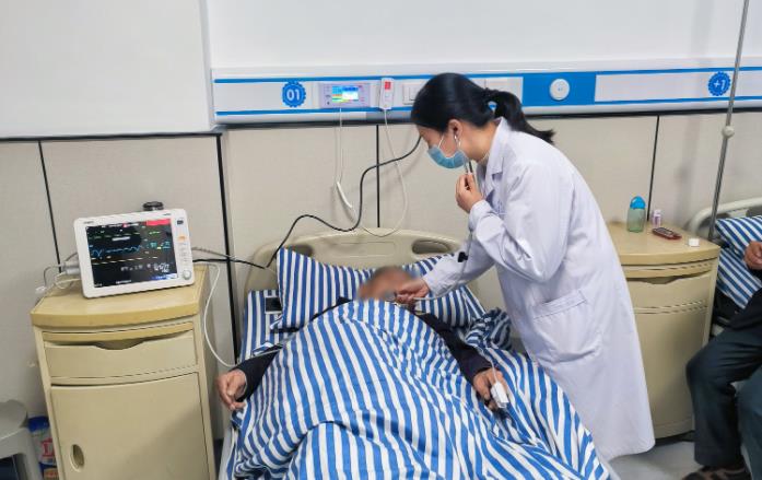 2022年12月7日,随着社会面疫情的放开,新型冠状病毒肆意蔓延,感染新冠肺炎的患者逐日暴增,她挺身而出,站到疫情防控第一线。12月28日,她正值夜班,急诊科送来一位80岁的老年新冠病毒肺炎患者,患者来时张口呼吸、面色发绀,精神极差,听诊肺部满肺湿啰音,胸部CT显示双肺大片状磨玻璃影,呈白肺样改变;床边心电监护显示氧饱和度60%。她迅速识别到患者为新冠肺炎危重型,并立即给予呼吸机辅助通气、抗感染、循环支持等系列急救治疗。她24小时密切监护患者各项生命指标,根据病情变化给予及时有效的调整治疗,最终在不断下调呼吸机参数后顺利脱离呼吸机,经过积极的心肺康复锻炼,能够下床活动及一般日常活动,经复查核酸转阴性,该患者于1月20日康复出院,家属送来锦旗感谢救命之恩和肯定她精湛的医疗技术!