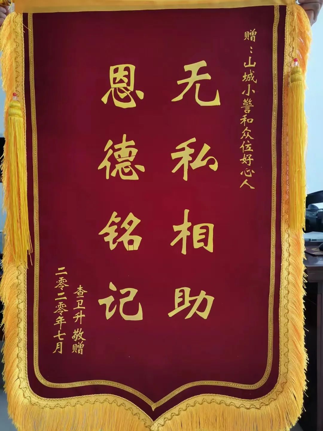 当网友得知烈士查卫光家人过得很艰辛,自发组织联系倪卫平,一笔笔款项通过微信转过来,一份份爱心将世界温暖……接到请求,倪卫平同志丝毫不敢马虎,通过云南省公安厅的战友联系,将所捐款项十余万元全部交到查父手中。老人拿着钱不停地念叨:“谢谢大家,谢谢大家”!查卫光的哥哥查卫升更是将一副写着“感谢山城小警和众位好心人,无私相助,恩德铭记”的锦旗寄到了乌兰察布市公安局。