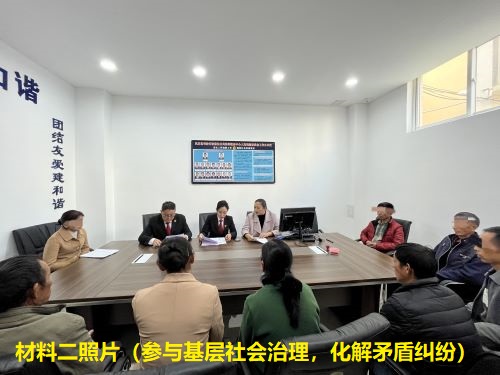 在法庭的这些年,他和同事克服山区路途颠簸、交通不便等困难,走遍了辖区的村村寨寨,化解矛盾纠纷、巡回办案、普法宣传........。到哪个村走哪条路更近,村里的村情民俗他都了解得清清楚楚,打下了坚实的群众基础。他通过拉家常、话理短的方式化解群众矛盾纠纷,同时通过通俗易懂、朴实的语言向群众宣传法律知识,每次他到村里,群众都会主动迎上来和他打招呼。