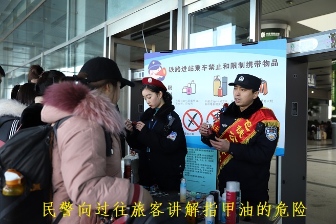 春运大幕开启,包头铁路公安处为强化广大旅客乘车出行的安全意识,做到“平安春运、有序春运、温馨春运,让旅客体验更美好”,在包头火车站召开了这次别开生面的“展览会”。活动中,民警利用精心制作的宣传板和危险品实物,分门别类地向大家讲解了《铁路进站乘车禁止和限制携带物品目录》的相关规定,并说明了如果携带了《目录》中规定的危险品该怎样处理。