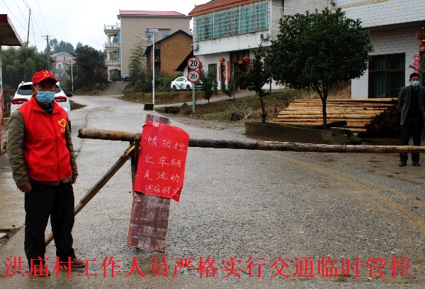 清风网邵阳讯(陈家坊镇 刘志坚 黄能果 陈精萃)“你好,当前正处于疫情防控的关键时期,外来村民和外来车辆一律不准进村,请积极配合......“2月4日上午,在新邵县陈家坊镇洪庙村一条与邻村相接交叉路口,工作人员正在严格实行交通临时管控。