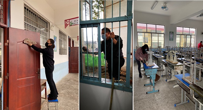 在打扫清理校园中,紫甸小学教师发扬不怕脏、不怕累,有的拿起抹布,抹冼教室门窗、学生座椅;有的手拿扫帚和畚斗,彻底打扫校园里的落叶、纸屑及卫生死角。此次校园清洁活动,净化了校园,扫除了病毒的生存空间,为全校师生营造健康温馨的美丽家园。