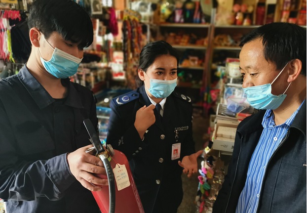 清风网讯(阿瓦提镇锦绣社区:海立)4月26日,阿瓦提镇锦绣社区考虑到多数商户正在逐渐复工复产,但是由于疫情一个多月的停工停产,许多商户在开展复工复产过程中存在一些安全隐患,经过协调城安消防知识宣传中心立即采取行动,与社区联系,走访商户,帮助商户对消防器材到期和损坏以及安全隐患进行自查自纠,同时还给他们普及了消防安全知识及消防注意事项,以及灭火器等消防器材的维护、使用以及更换。