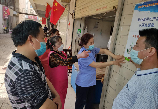 截止目前,共出动执法人员17人次,检查食用农产品经营户46家,食品经营户19家,宣传“三个白皮书”210余人次。引导市场开展着落实疫情防控责任,继续做好人员密集场所体温测量和劝导入场的顾客佩戴口罩工作,把疫情防控作为当前最重要的工作来抓。