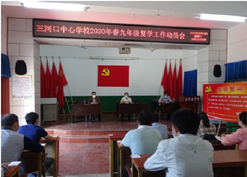 ——麻城市三河口中心学校召开九年级复学动员会暨疫情防控培训会