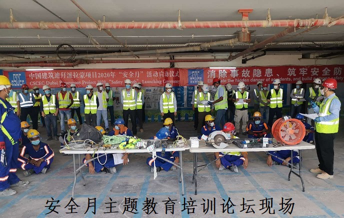 今年的全国安全生产月其主题为“消除事故隐患,筑牢安全防线”。一向重视安全生产,曾获20万工时无事故奖的中建七局迪拜派拉蒙酒店项目部,快速贯彻落实工程局和公司的“安全月”活动部署和要求,在防范疫情的大环境下,继续秉承以人为本,安全发展的理念,坚持“安全第一,预防为主,综合治理”的安全生产方针,紧扣安全月活动主题,结合派拉蒙酒店项目自身特点,迅速行动起来,筹划并着手开展形式多样的安安全生产、疫情防控宣传和教育体验活动。