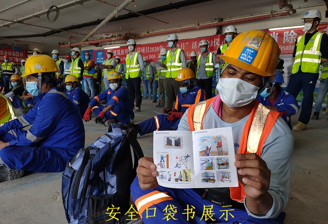 本次安全主题教育培训论坛,还组织中外员工观看了2020年安全月警示教育片,对中国建筑股份公司和中建七局关于安全生产月的部署进行了宣贯,进行了个人安全劳动防护用品佩戴,施工机具安全使用与维护,动火作业、临时用电安全防护,高空坠落和高空物体打击隐患排查等现场教育,并向中外一线作业员工赠送了安全文化漫画口袋书,务求营造安全生产、疫情管理人人有责的活动氛围,使安全生产隐患排查整治、疫情防控意识入脑入心。