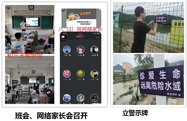 一是按照市局的通知,我校6月5日分年级进行了初三年级的防溺水主题班会,初一初二年级的防溺水安全主题网络家长会。通过“两会”的召开,向学生以及家长讲解防止溺水、自救方法等相关知识宣传。