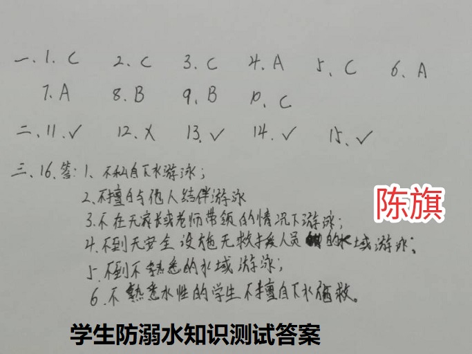 三是积极开展防溺水安全知识测试,让学生和家长掌握相关的防溺水知识,掌握相关的安全技能,做到防溺水安全心中有数。