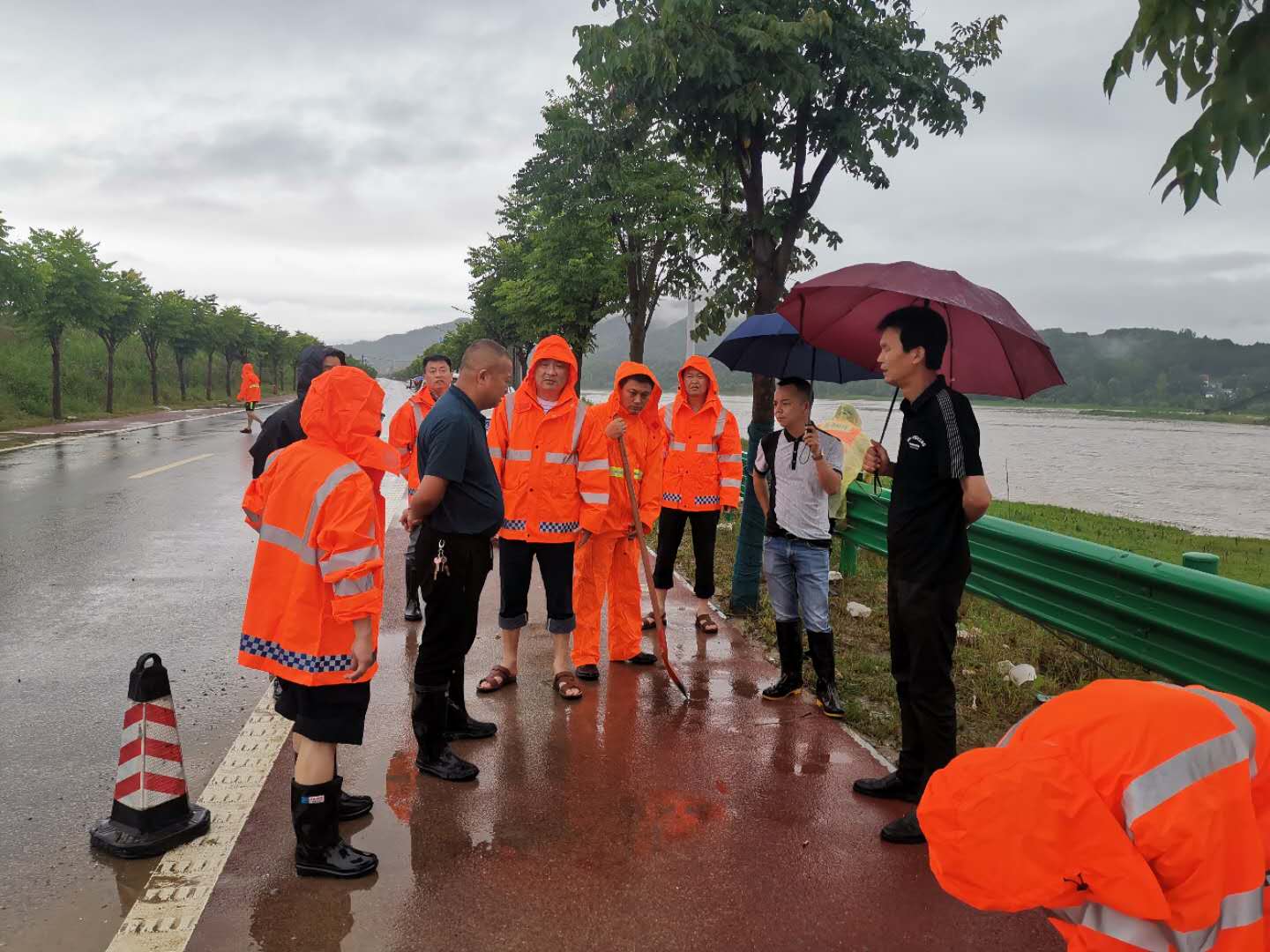 灾情就是命令,保畅就是责任!面对险情,湖北英山县农路局立即进入战时状态,迅速启动抢险救灾应急预案,全员备战。王勇局长亲自率队指挥,应急材料、机械、人员第一时间集结到位,按责任分工,英山县农路局紧急成立在建工程、农村公路危桥、农村公路养护3支抢险分队和一支20余人的综合救灾突击队。抢险分队主要负责县内英檀线、红杨线、草太线等各条线路、各施工项目的灾情巡查、信息上报,隐患处置;突击队就是“游击队”,配合加强各小分队抢险力量,哪里有险情就出现哪里,凝心聚力,攻坚克难,力争在最短的时间内把农村公路损失降到最低,以最快的速度确保农村公路全线贯通,尽最大的力量保证人民群众安全出行。