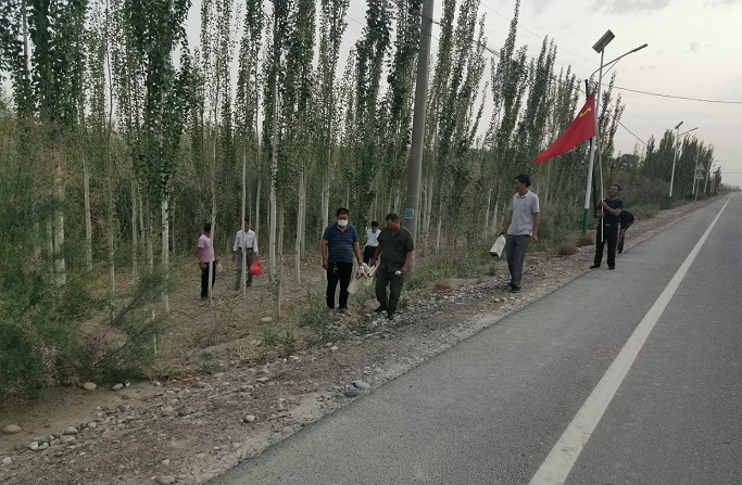 清风网讯(阿瓦提县天宏公司;肉孜·艾山)为进一步加强支部党员的“爱国卫生”意识,充分发挥共产党员先锋模范作用,全面提升我村的环境卫生水平,村里有一个良好的生活环境,6月26日下午,艾买秋克村党支部积极响应县和丰收片区管理委员会关于大力开展人居环境政治活动的号召,组织驻村工作队、村“两委”班子成员及支部党员开展了“清理垃圾、共建美丽乡村”党员主题日活动。活动共29人参加,指定他们到阿瓦提县丰收片区“217国道”艾买秋克村一组的路段和两边的林带,相互配合、分工合作地开展了集中清理垃圾活动。