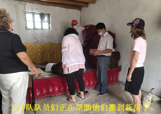 工作队第一书记和农户沟通,他们表示愿意搬到新房子去住,然后工作队队员也鼓励他们,尽快地搬入新居。