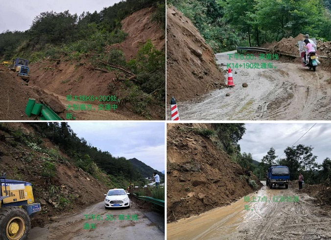 经过一下午的紧张作业,截止到19日晚上6点英黄线已抢通,可半副通行;6.30草太线抢通,半副通行;红英线处山体极不稳定,在抢险中出现再次塌方情况,给抢险工作带来一定难度,农路局抢险人员全力以赴,终于在7点打通线路,半幅通行。