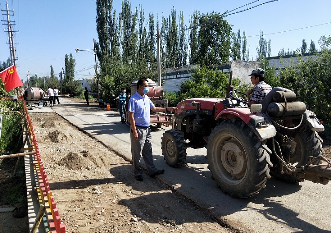 “这条路长约2公里,是100余户村民生产生活的主干道,因道路较窄,造成村民出行不便,还存在安全隐患。根据村民意愿,由村民出资出劳,实施道路扩建工程。”党支部书记赛买提·艾则孜说:“我们每天安排一名村干部和一名工作队员在施工区域开展安全宣传教育工作,引导村民在出行和施工中注意安全,确保道路扩建工程顺利完成。”