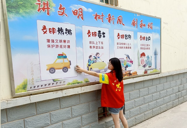 清风网讯(湖州师范学院;王思雨)为培养学生的实践能力、动手能力,每年暑期湖州师范学院都会开展暑期社会实践。暑期社区服务团的成员主要把服务带向社区,比如美化社区环境,打扫社区宣传牌,粘贴宣传单等,为打造美好生活贡献出自己的一份力量。