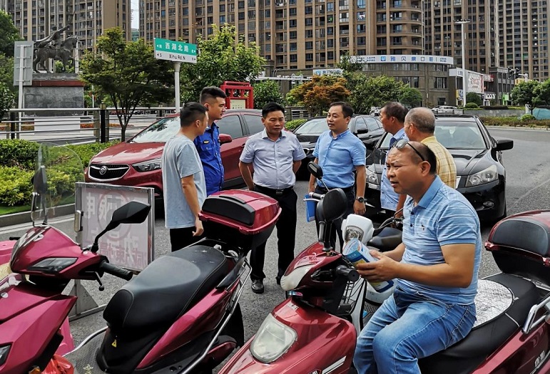 清风网讯(通讯员;刘刚) 7月28日清晨,天微微亮时,细心的邵阳市民就能发现,北塔区在进往城区的道路上多了很多交通劝导员,这些不辞辛苦的人员正是目前北塔区开展“限摩限电”劝导期的劝导员。为了进一步让全区更多市民了解到“限摩限电”政策和相关法规知识,北塔区城区限摩限电集中整治领导小组决定,从7月28日至7月30日,开展为期3天的“限摩限电”的劝导工作。