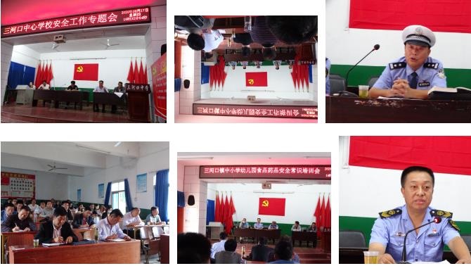 全镇中小学校长、幼儿园园长、各学校政教主任、后勤安全工作员40余人参加会议。中心学校班子成员、三河口派出所、三河口市场监督管理所、三河口镇卫生院相关负责人出席。教育总支副书记曾升峰主持会议。