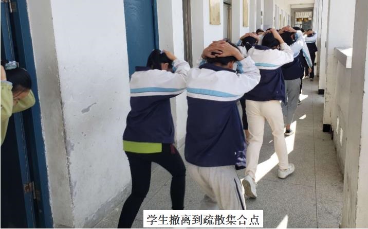 9时11分,空袭警报响起,班主任立即组织学生疏散,全体教师进入各自岗位及时疏导。各班同学在班主任的指挥下,按照指定的安全出口、楼梯路径,快速有序地离开教学楼,紧急撤离到制定集合地点。整个疏散过程仅用时2分半钟,演练过程反应迅速、平安有序,达到了预期效果。