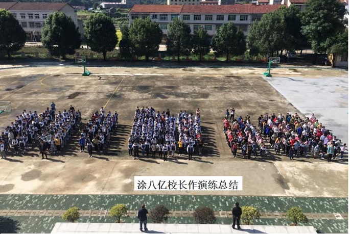 在演练结束后,分管政教安全的涂八亿校长作了演练总结。他对学生进行了深刻的爱国教育,要求大家要铭记历史、不忘国耻,要珍惜今天的幸福生活、认真读书。最后,肖兵校长对全体师生提出了要求,希望大家能以这次疏散演练为契机,牢记安全常识,学会避险技巧。