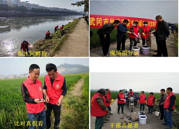 开展福寿螺防控,武冈市农业农村局筹帷运幄、锐意进取,时间安排从10月15日开始一直到2021年开春结束,方法上统一采用化学与人工防治相结合,具体包括人工摘除卵拾螺、药剂防治、养鸭、人工诱杀等。通过在水稻田间喷施3.2%阿维菌素微乳剂,抑或在水圳及河道里采用人工捡螺。短短15天时间,共防控水田面积2000亩,地点从穿城河到马家桥再到资江入水口,其中资江河从水南桥一直到云山进山大桥段,不仅累计人工捡螺1800公斤,而且防治区域卵块也逐一得到铲除(打烂后用石灰掩埋无害化处理),甚至指导帮助养鸭专业户打碎成螺变饲料,结果不但从源头上减少福寿螺来年基数,还为不断积累防控经验贡献农业农村部门志愿者一份力量。