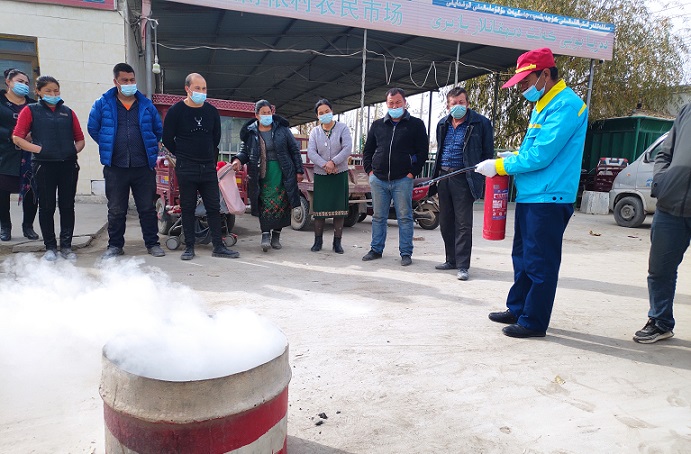 工作队邀请村加油站的站长阿不拉江向村民们讲解了日常火灾防范工作,灭火器的种类、使用范围、使用方法,安全消防常识,如何扑救初期火灾等常识等。随后开展了消防演练活动,村民们参与的热情度很高。在火灾现场模拟环节,随即选的村民挨个拿上灭火器开始实地操作正确使用灭火器灭火,当出现慌张操作方法不规范的村民时,工作队的阿卜杜如苏力老师都耐心进行了指导与纠正。工作队通过组织实际操作让村民们学习了灭火器的正确使用方法,提升了村民自主扑灭初期火灾的能力。“原来我们一直认为灭火器很难操作使用,通过这次学习和演练,我明白了消防安全的重要性。谢谢新疆农业大学工作队让我现在能更加熟练和有信心运用好我店铺里的灭火器了。”村小百货店老板娘月尔尼沙汗说。