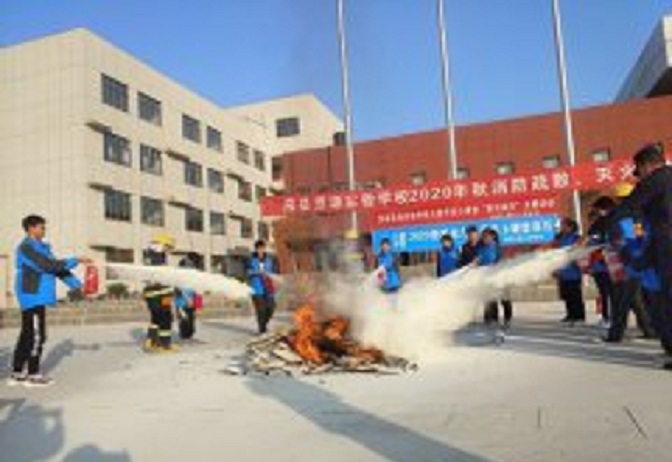 随后,房县消防救援大队利用宣传车组织观看了火灾警示纪录片,学习了各种消防器材的功能及操作方法等消防知识。房县公安局红塔派出所现场讲解了干粉灭火器和消防车高压水枪灭火的使用方法和注意事项,并现场演示了如何熟练灭火。随后,学生代表进行了实战演练,面对熊熊烈火,同学们沉着冷静,按照所学的使用方法和操作步骤,迅速将火源扑灭,赢得了在场师生的阵阵喝彩。最后,房县大爱义工再次讲解了相关消防安全知识,并让学生真实体验了过滤式消防自救呼吸器。