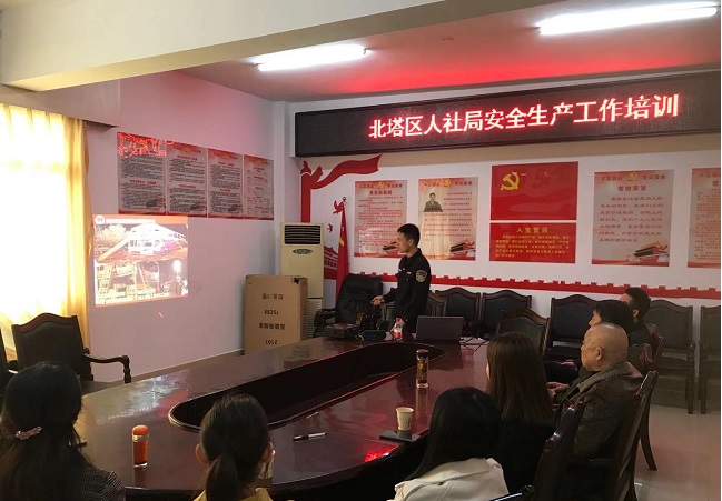 清风网讯(通讯员: 岳志勇 付日晖 邓洪都) 为进一步加强和规北塔区辖工厂、民办培训机构消防安全管理,消除事故隐患,筑牢安全防线,12月1日,北塔区人社局组织开展安全生产工作培训,北塔区消防公益服务中心周立权教官现场讲课。 消防设备设施的功能和使用方法,并结合当前安全生产工作重点,针对日常工作和生活用电、用气、用火知识,介绍了火灾发生的原因、造成的危害、火灾的预防、初期火灾扑救及自防自救方法、逃生技巧等,通过大量案例、视频、图片、数据,给参训人员上了一堂重点突出、详细生动的消防知识专业课。会上介绍了中小企业扶持政策以及技能培训政策。