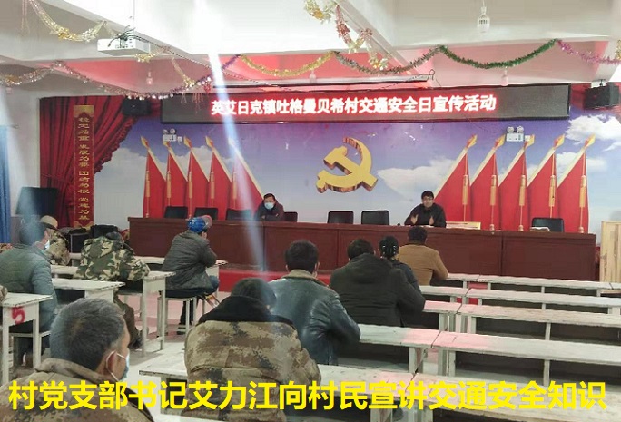 12月2日阿瓦提县水利局驻英艾日克镇吐格曼贝希村驻村工作队在落实疫情防控的前提下组织30余名村民开展了以“提高交通安全意识”为主题的交通安全教育活动。工作队员和党支部就目前针对村民的出行条件进行了分析,近年来,随着村民经济水平的日益增长,每家每户都买上了摩托车。但大部分村民的交通安全意识较弱,摩托车驾驶员基本没参加过专业的驾校培训。出现了拖拉机载人、超载超员、和骑摩托车不佩戴安全帽、等现象。针对这类现象,工作队通过新闻和图片展等活生生的范例和宣读《道路交通安全法》等形式对村民进行了生动、细致的讲解说明。村民也意识到了自身存在的各类不文明的交通行为。并表示,今后要本着珍惜生命的原则,全面提高交通安全意识,争做文明交通参与者。