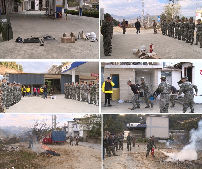 此次演练模拟鲁史镇加油站出现突发火灾与不法分子抢劫,对当地民众生命财产安全形成威胁。演练前由镇安委办与武装部负责人就灭火器、灭火毯、防爆盾、钢叉等器材及灭火、制敌技巧进行培训;演练中,应急救援队伍默契配合完成消火栓等灭火操作、及时响应民众呼救制服不法分子。整个演练过程持续1个小时,演练项目达到预期效果、顺利完成。