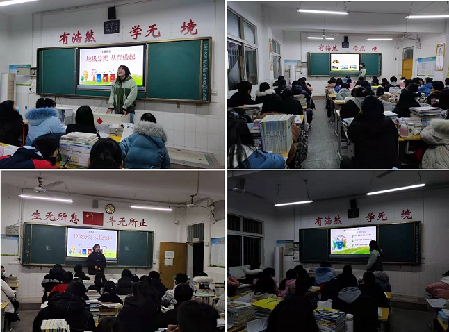 活动中,各班主任利用精心准备的PPT,通过开展主题班会,告诉大家垃圾分类的标准、垃圾收集的方法及垃圾分类的重要性,让学生对垃圾分类的相关知识有了更清晰的认知。同时发出垃圾分类的活动倡议,倡导全体师生做好垃圾分类,做垃圾分类的践行者。
