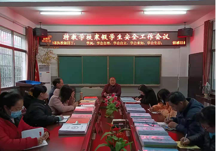 会上,徐波校长提出明确要求。徐校长表示:一年一度的寒假生活即将开始,希望同学们在寒假期间要提高安全意识,远离安全隐患,快快乐乐过年、平平安安返校。接着,分管安全校长郑舟根据智障学生的特点,利用案例、图片和视频多种方式,就“用电安全”“消防安全”“防溺水安全”“交通安全”等多个方面向学生进行了系统、全面的安全知识教育,极大地提高了学生的防范意识和自我保护能力。