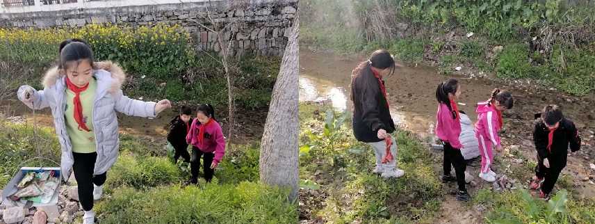 英山河南畈小学“世界水日”红领巾捡垃圾 护水源